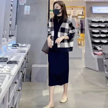 下单购买米珀莉连衣裙秋冬女装小香风两件套套装裙时尚气质2021新款显瘦长袖学院风洋气外套宽松休闲修身针织打底 套装 均码