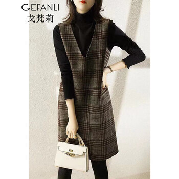 142.4元抢购戈梵莉连衣裙新品2021新款女装秋冬气质两件套套装裙大码显瘦性感毛呢轻熟裙中长女士春秋打底裙2223 图片色 S(建议100斤以下)