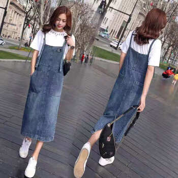 230.37元抢购2021春夏新款中长款过膝收腰显瘦牛仔连衣裙女装休闲牛仔裙子潮流 吊带裙 03# L 106-115
