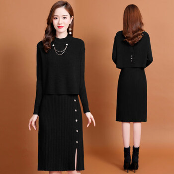 287.2元抢购恒源祥秋冬连衣裙女小个子女装套装裙子韩版气质百搭针织连衣裙新款针织裙秋装女21年连衣裙女长袖中长款 黑色 均码