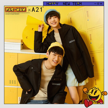下单购买【吃豆人联名】A21秋冬季2021新款男装梭织时尚街头宽松连帽立体袋设计长袖开胸夹层男外套情侣款 黑色 170/84A/M