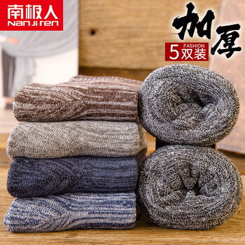 23.92元抢购南极人5双装保暖袜子男士中筒袜秋冬季加绒加厚毛圈袜潮流复古雪地袜 自由经线毛圈袜-5双装