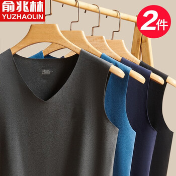 抢购俞兆林【2件】男士保暖背心男无痕双磨绒V领德绒无袖宽肩马甲内穿紧身冬天打底单件上衣秋冬季 时尚黑+深空灰 XL(100-145斤)