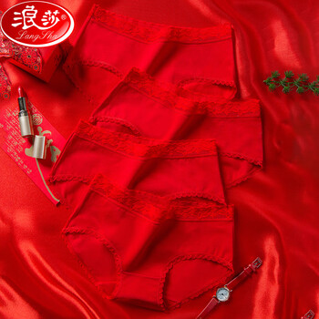 下单购买浪莎本命年内裤女虎年喜庆结婚中腰三角裤(4条装)纯棉裆大红女士内裤 大红*4 L(90-120斤)