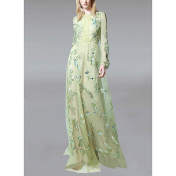 454.4元抢购原创设计师女装女巫和骑优雅森系气质超仙重工绣花连衣裙2022春新款裙子 绿色 M