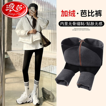 下单购买浪莎鲨鱼皮打底裤女裤子外穿秋冬季加绒加厚收腹瘦腿微压力芭比瑜伽裤黑色 灰色绒(提臀芭比裤)-黑色 M