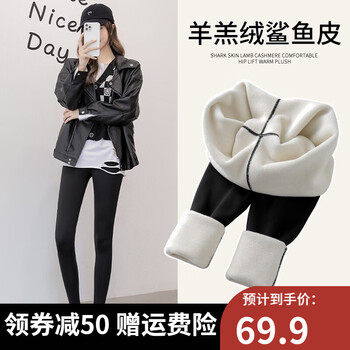 95.92元抢购宝娜斯鲨鱼皮打底裤女外穿紧身收腹提臀保暖显瘦芭比弹力瑜伽裤子 黑色-加绒款 L(适合105-130斤)