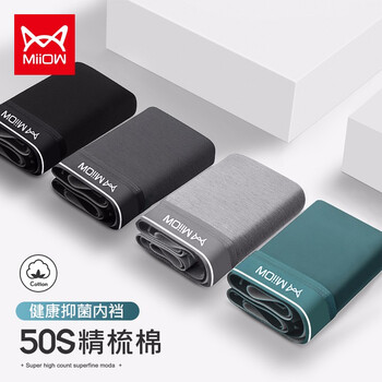 与《猫人4条装抑菌男士内裤男平角裤50S精梳棉中腰透气男式四角内裤u凸短裤头男裤衩 深花灰 黑色 深灰 孔雀蓝XL》同类商品的售价: